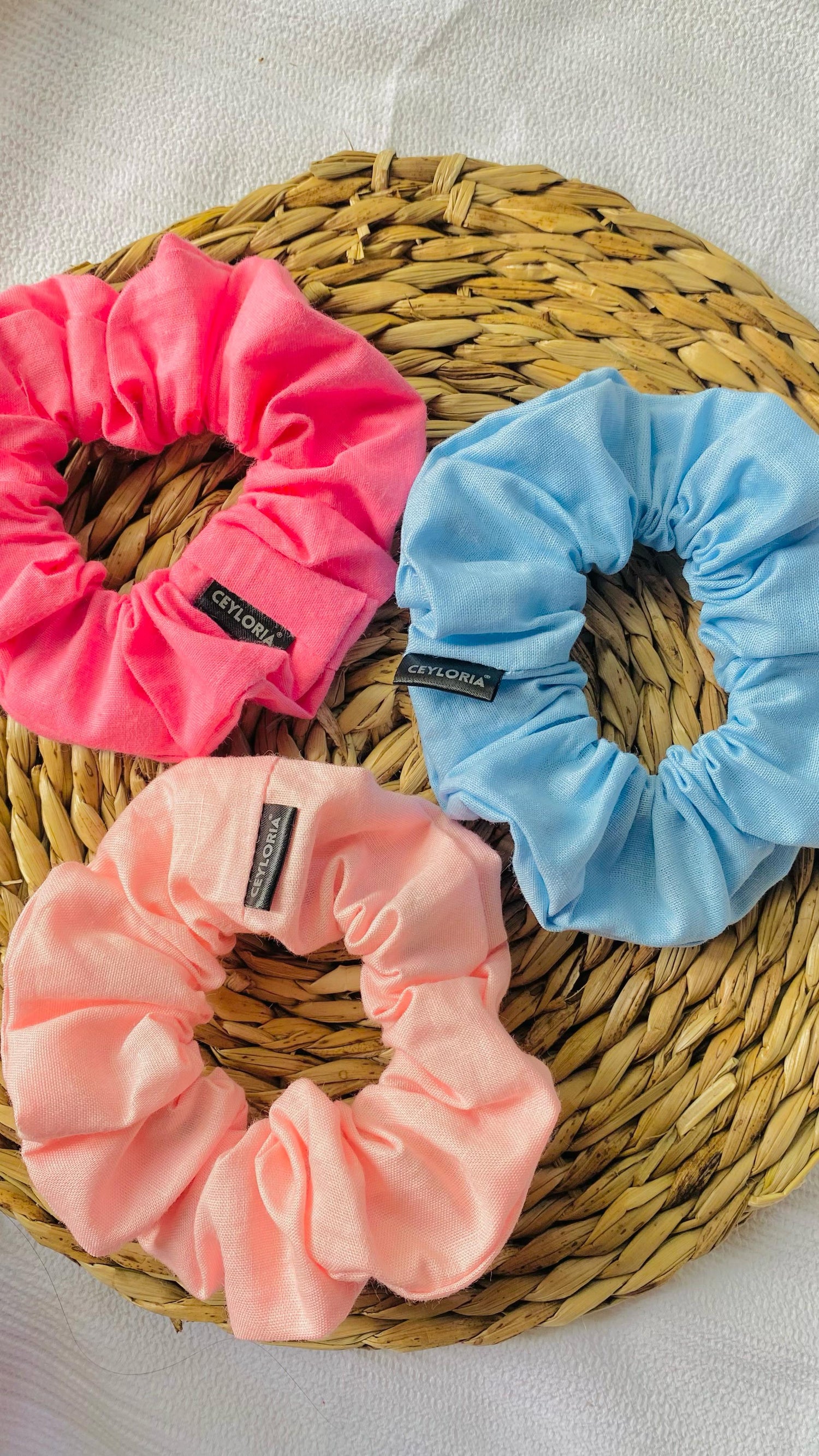 Explore our eco-friendly scrunchies made from breathable cotton and linen. Gentle on hair, perfect for all styles.